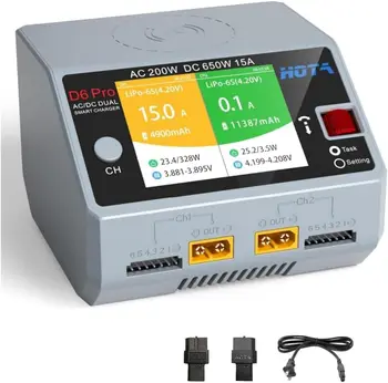 HOTA D6 Dual Smart Charger DC650W 15A Plastic Micro USB Built-in for Lipo LiIon NiMH Battery Compatible with Mobile and Drone